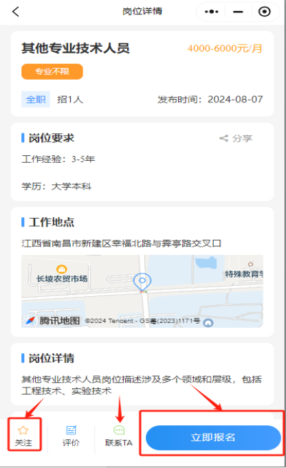 答:求職者可以輸入崗位關(guān)鍵字進行搜索,根據(jù)崗位類型、薪資待遇等條件進行篩選,還可以進入分區(qū),瀏覽針對不同群體的推薦崗位。點擊進入崗位詳情頁,求職者可以點擊立即報名,也可以通過撥打電話或在線聊天聯(lián)系招聘企業(yè)。