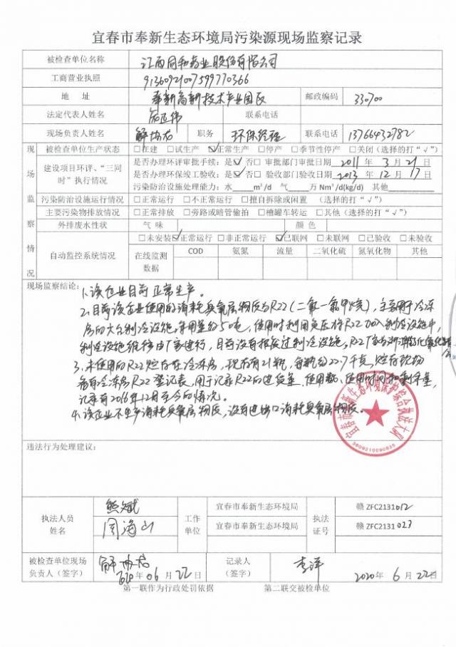 宜春市奉新生態環境局“雙隨機、一公開”重點污染源監察工作信息公示(二季度)