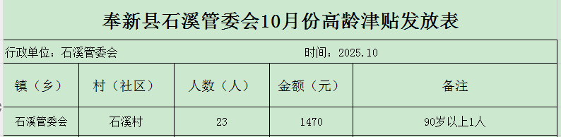 【高齡津貼】奉新縣石溪管委會(huì)石溪村2025年10月份高齡津貼發(fā)放表