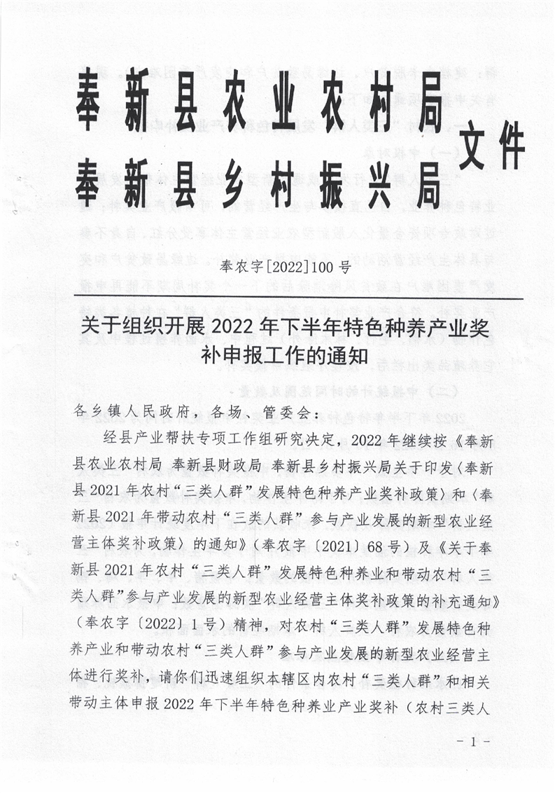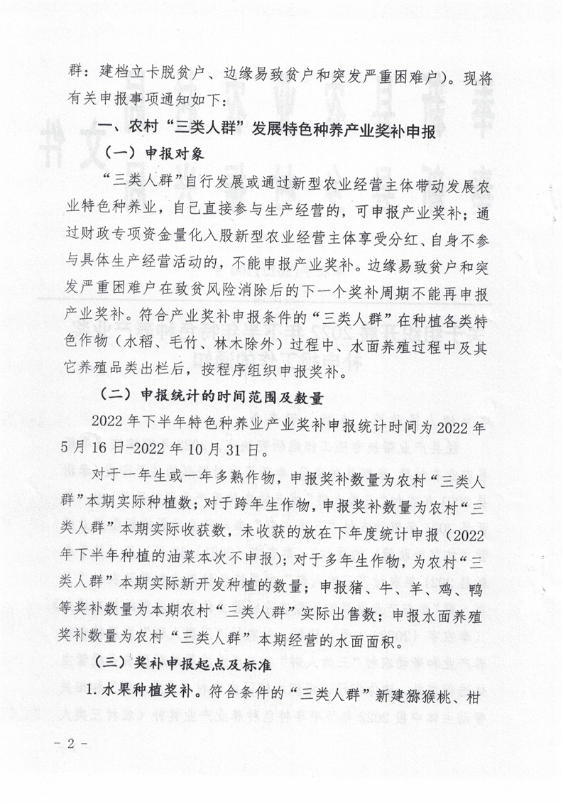 關于組織開展2022年下半年特色種養產業獎補申報工作的通知