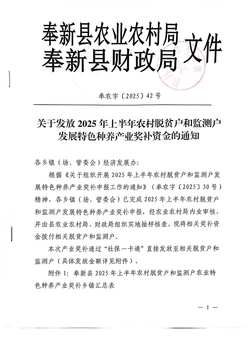 關(guān)于發(fā)放2025年上半年農(nóng)村脫貧戶和監(jiān)測(cè)戶發(fā)展特色種養(yǎng)產(chǎn)業(yè)獎(jiǎng)補(bǔ)資金的通知