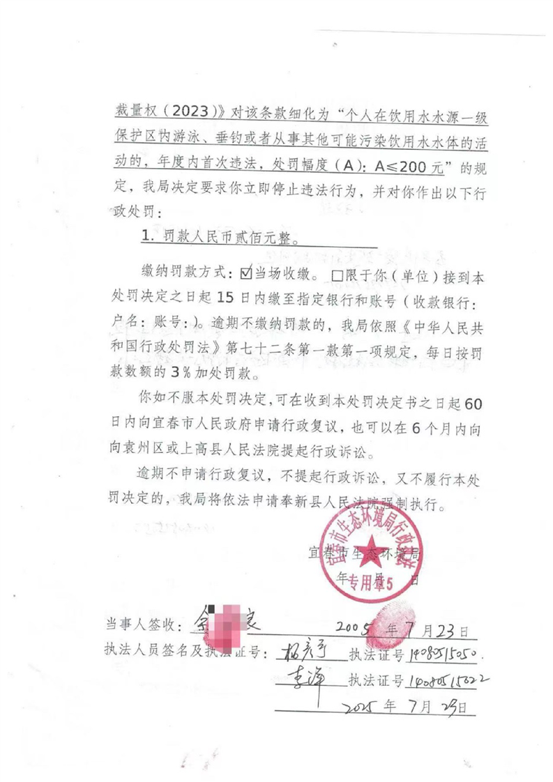 宜春市生態(tài)環(huán)境局當場行政處罰決定書