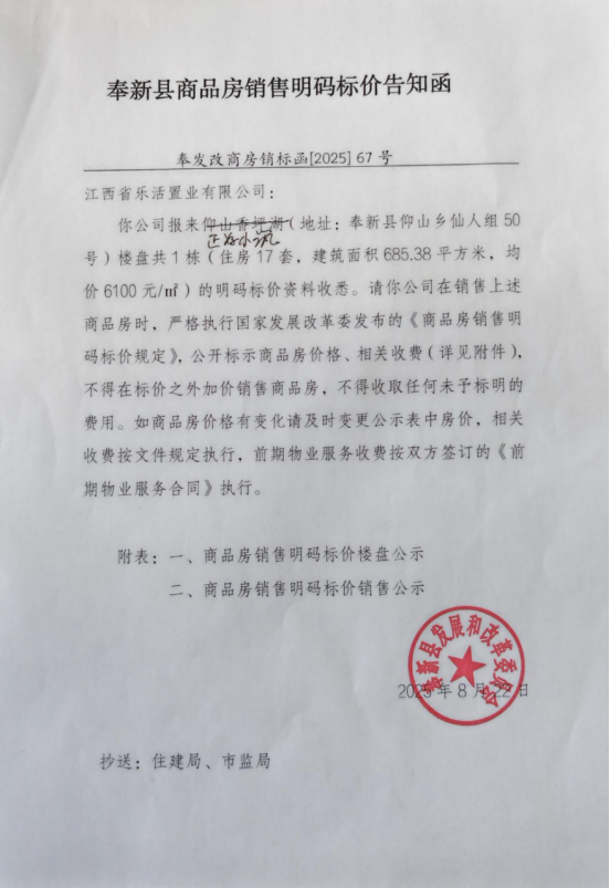 仰山正好小筑1#樓預售許可證和銷售價格公示