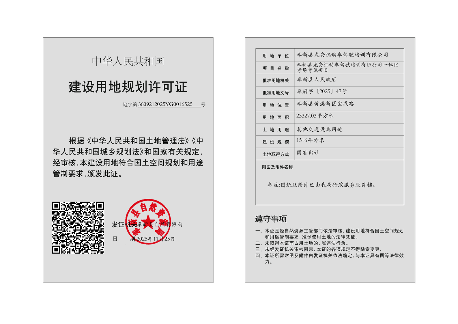 關于奉新縣龍安機動車駕駛培訓有限公司一體化考場考試項目行政許可審批結果的公示