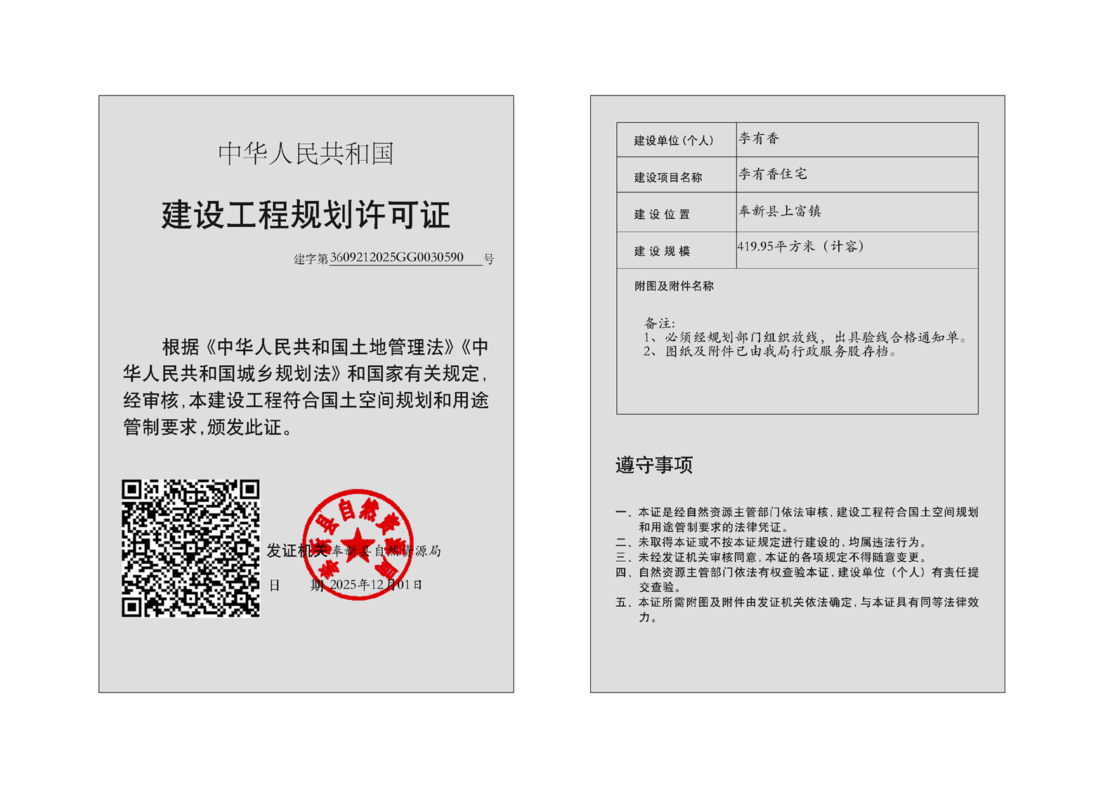 關于奉新縣上富鎮李有香住宅建設項目行政許可審批結果的公示