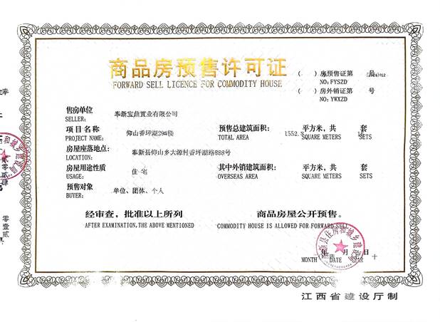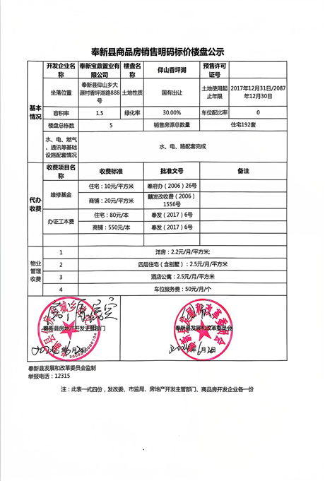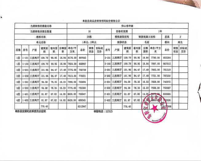 仰山香坪湖29#樓預(yù)售許可證和銷售價(jià)格公示