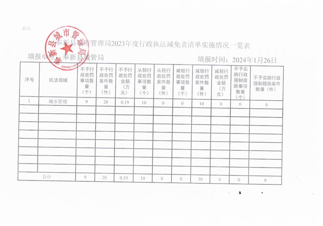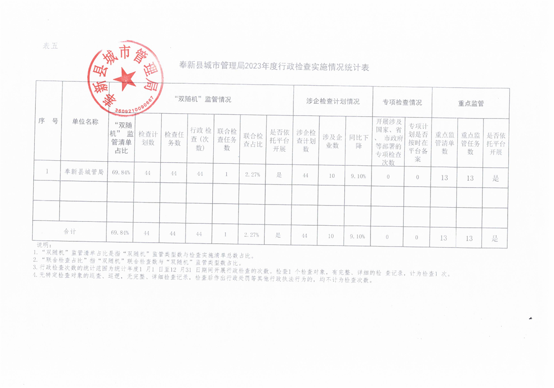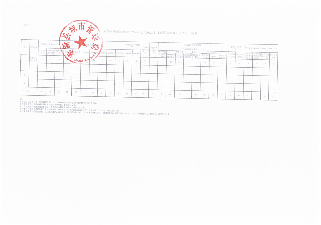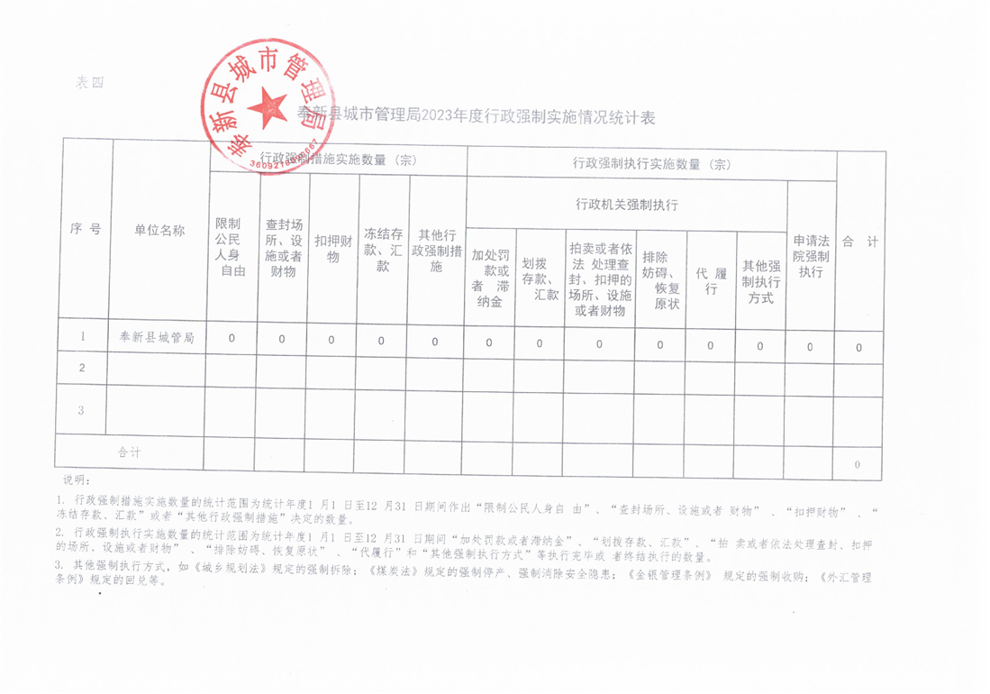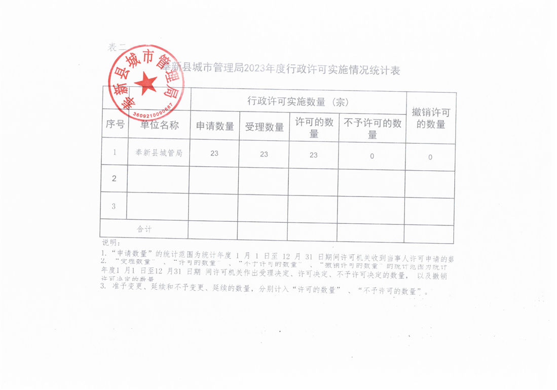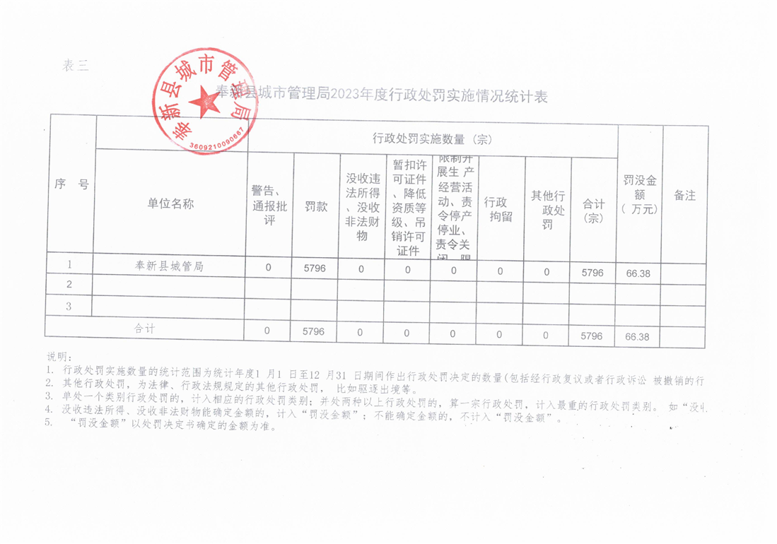 奉新縣城市管理局2023年度行政執(zhí)法統(tǒng)計年報