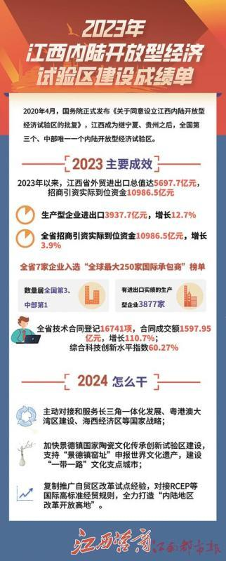 2023年以來,江西省外貿進出口總值達5697.7億元,招商引資實際到位資金10986.5億元……亮眼的成績單背后,是江西省擎起內陸開放的大旗、不斷推動內陸開放型經濟試驗區建設的堅實步伐。
