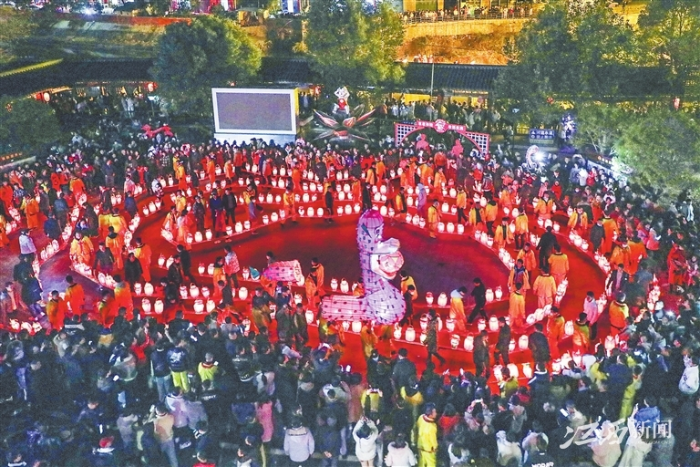 ▲2月15日晚,廣昌縣塘坊鎮舉行橋燈展演賀新春活動,吸引大批村民和游客前來觀看。塘坊橋燈起源于明朝永樂年間,每年正月,當地群眾一直保留著舞橋燈賀新春迎元宵這一傳統習俗,以此來祈愿新年五谷豐登、風調雨順、國泰民安。攝影丨江西日報全媒體記者李劼