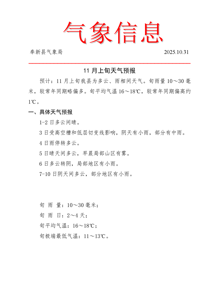 11月上旬天氣預(yù)報(bào)