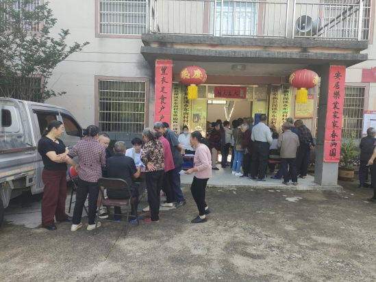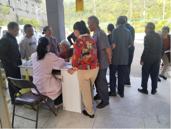便民服務“零距離”。在村口空地和村衛生室,醫護人員根據實際情況設置臨時體檢點。醫護人員耐心細致地為老人進行抽血,測量血壓、體重、身高、尿檢等健康體檢項目,主動親切與老人面對面交談,詳細詢問和記錄居民們的生活習慣、身體狀況、日常用藥等情況,為老人進行現場問診和用藥指導,解答老人健康疑問,幫助提升健康管理意識。