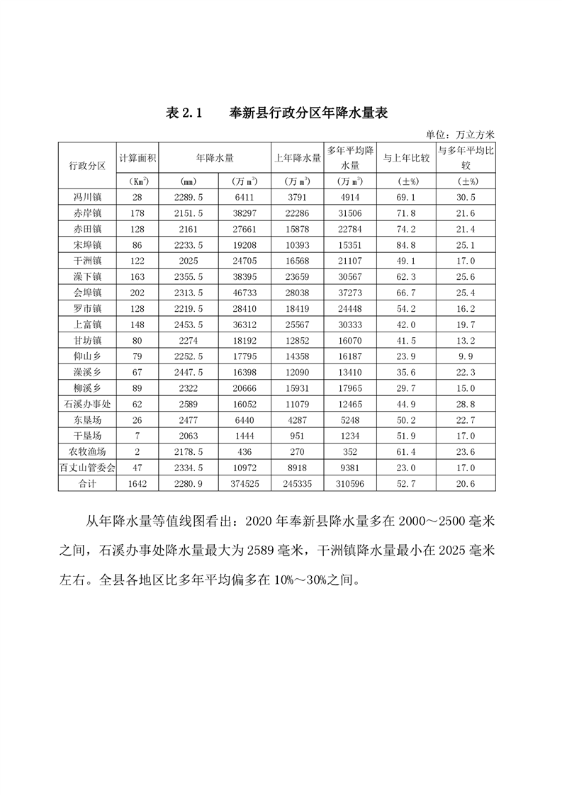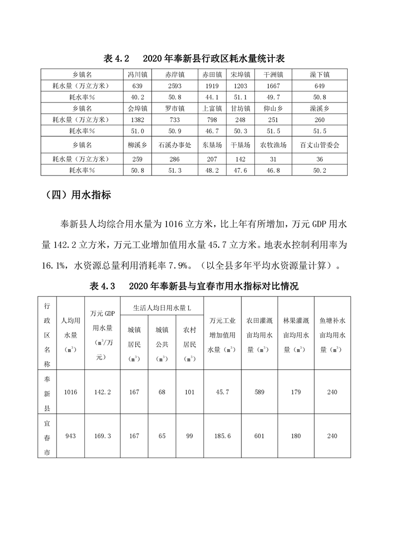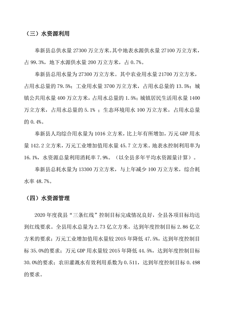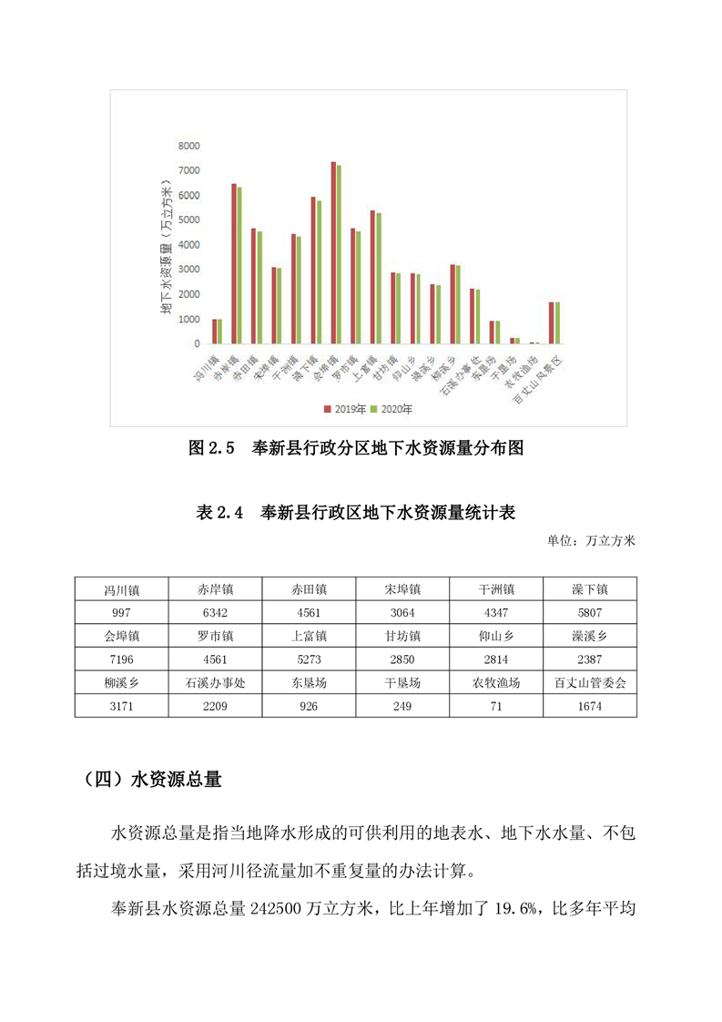 2020年奉新縣水資源公報