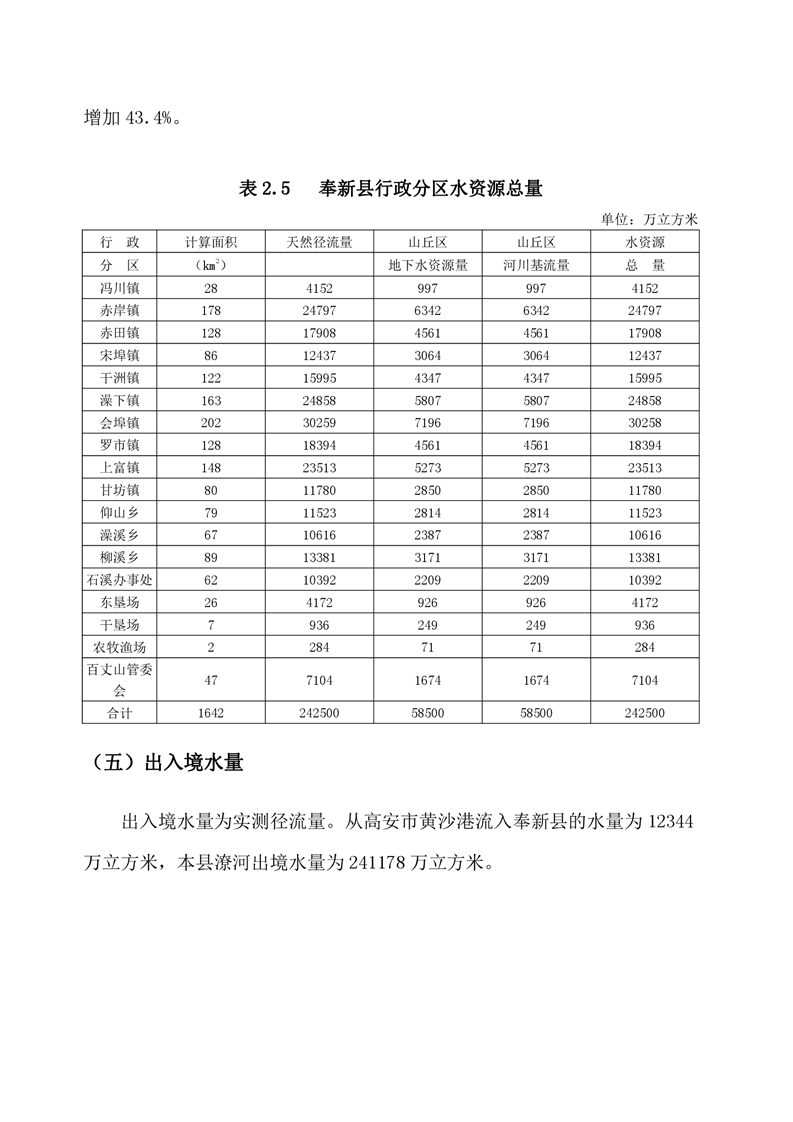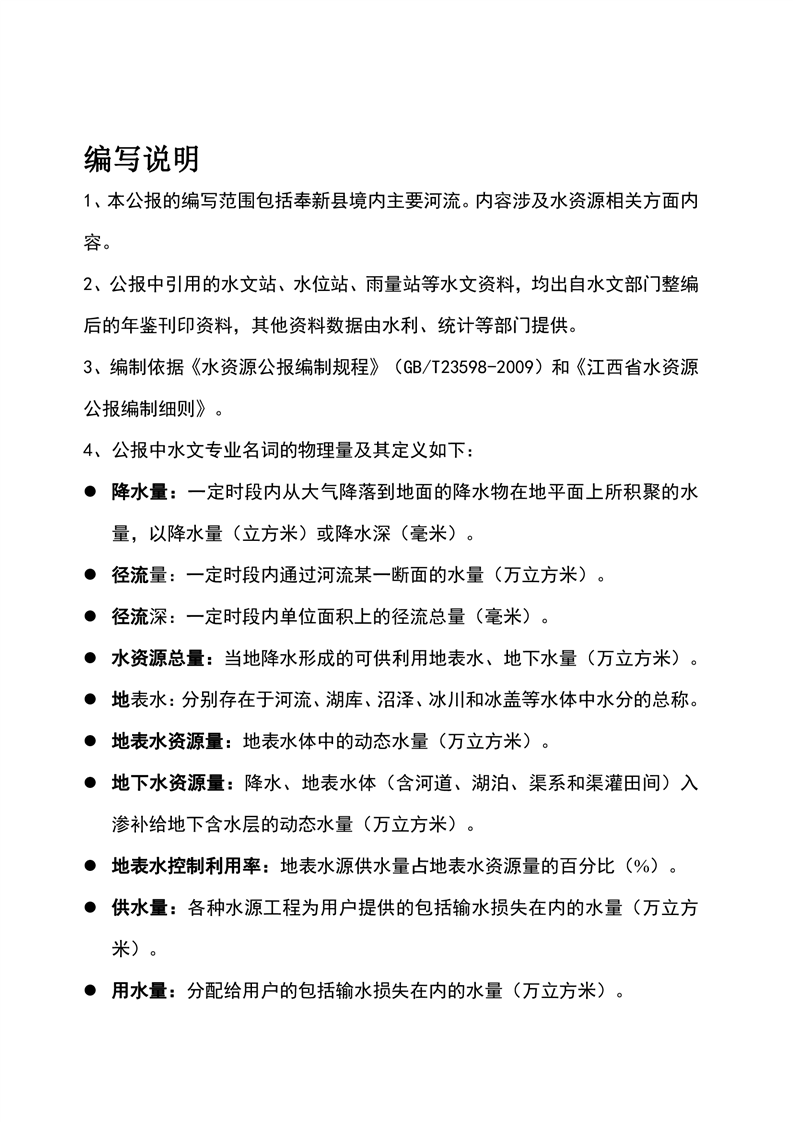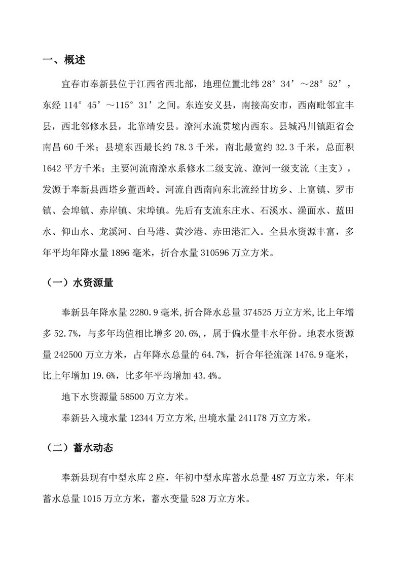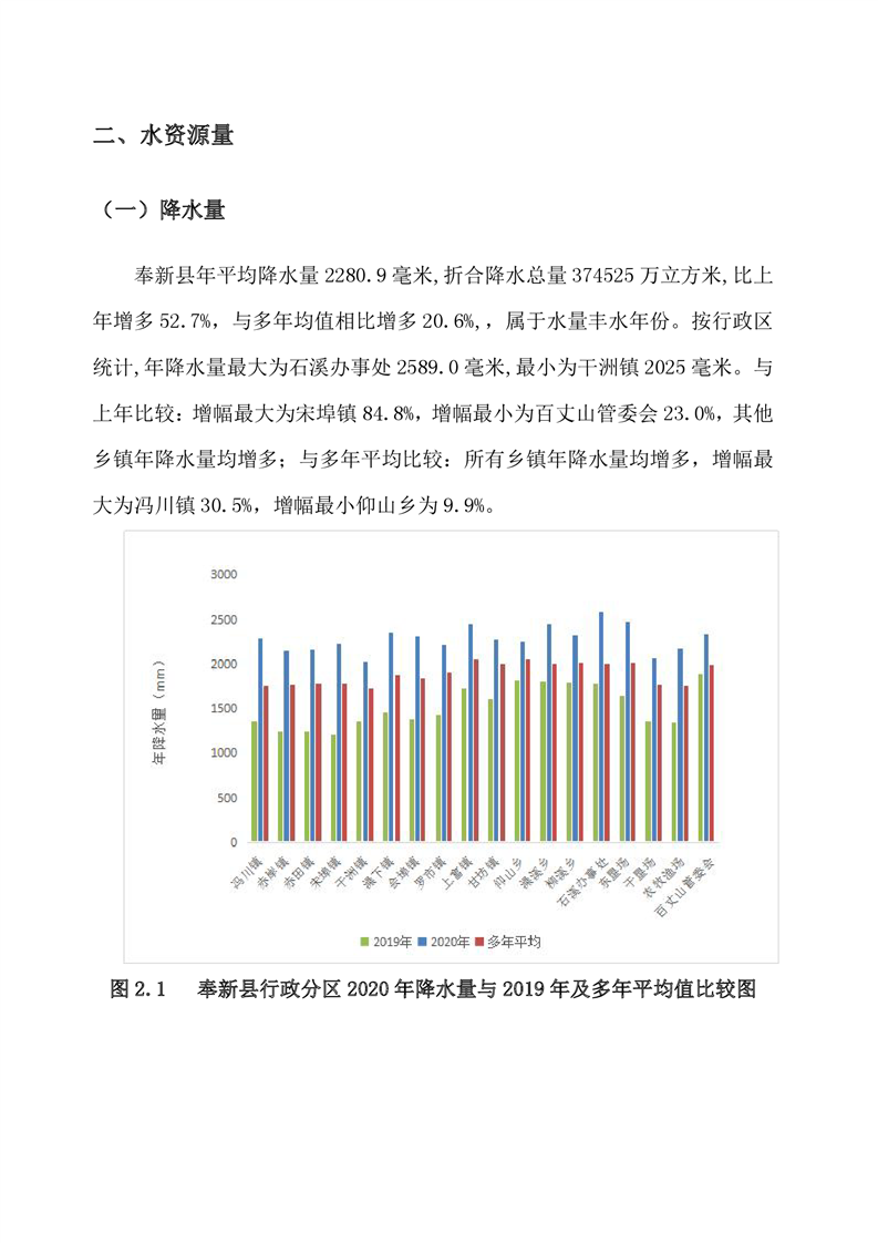 2020年奉新縣水資源公報
