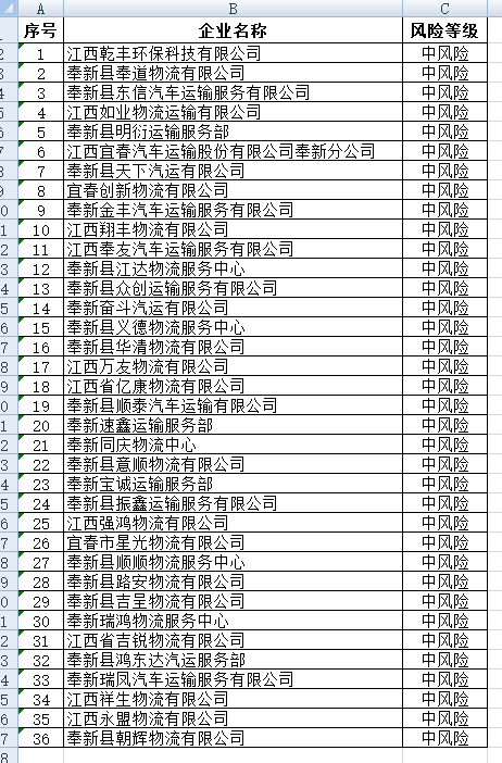 奉新縣共計(jì)35家道路運(yùn)輸企業(yè)被評(píng)估為中風(fēng)險(xiǎn)企業(yè),以上為全部?jī)?nèi)容。