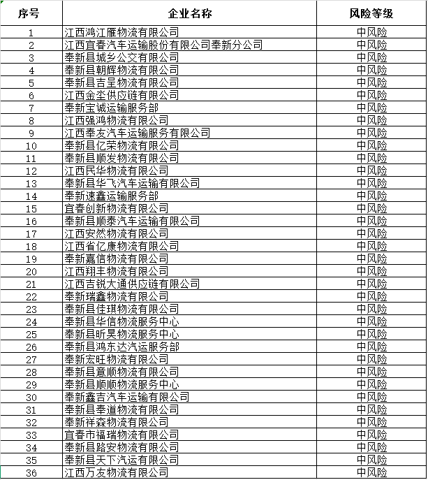 奉新縣共計36家道路運輸企業被評估為中、高風險企業,以上為全部內容。