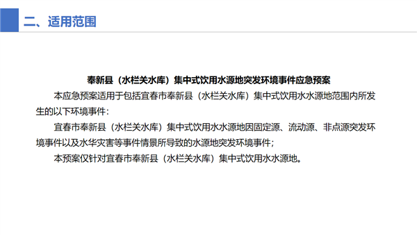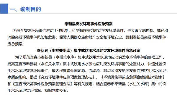圖文解讀:關于印發奉新縣突發環境事件應急預案、奉新縣(水欄關水庫)集中式飲用水源地突發環境事件應急預案的通知