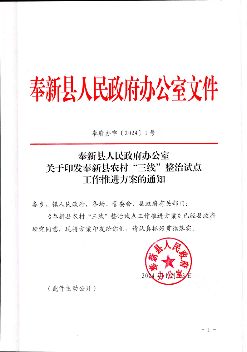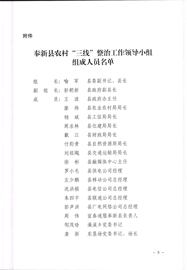 關于印發奉新縣農村“三線”整治試點工作推進方案的通知