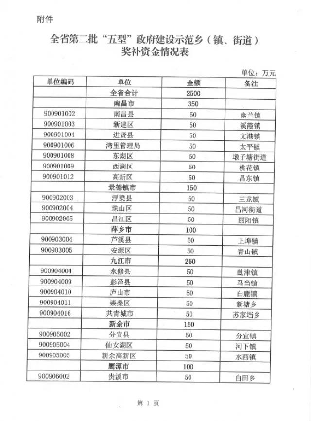 ? 為落實(shí)省政府推動(dòng)“五型”政府建設(shè)若干政策措施,激勵(lì)市縣持續(xù)在“五型”政府建設(shè)中走前列、當(dāng)標(biāo)桿、作表率,推動(dòng)形成互學(xué)互鑒、比學(xué)趕超的濃厚氛圍,按照省“五型”政府建設(shè)領(lǐng)導(dǎo)小組辦公室發(fā)布的全省第二批示范鄉(xiāng)(鎮(zhèn)、街道)名單和確定的獎(jiǎng)勵(lì)標(biāo)準(zhǔn),日前,省財(cái)政及時(shí)下達(dá)全省第二批“五型”政府建設(shè)示范鄉(xiāng)(鎮(zhèn)、街道)獎(jiǎng)補(bǔ)資金2500萬元,對(duì)受表彰的50個(gè)示范鄉(xiāng)(鎮(zhèn)、街道),按照50萬元/個(gè)的獎(jiǎng)勵(lì)標(biāo)準(zhǔn)給予一次性工作經(jīng)費(fèi)獎(jiǎng)勵(lì),主要用于該地區(qū)推進(jìn)“五型”政府建設(shè),實(shí)現(xiàn)高質(zhì)量跨越式發(fā)展。