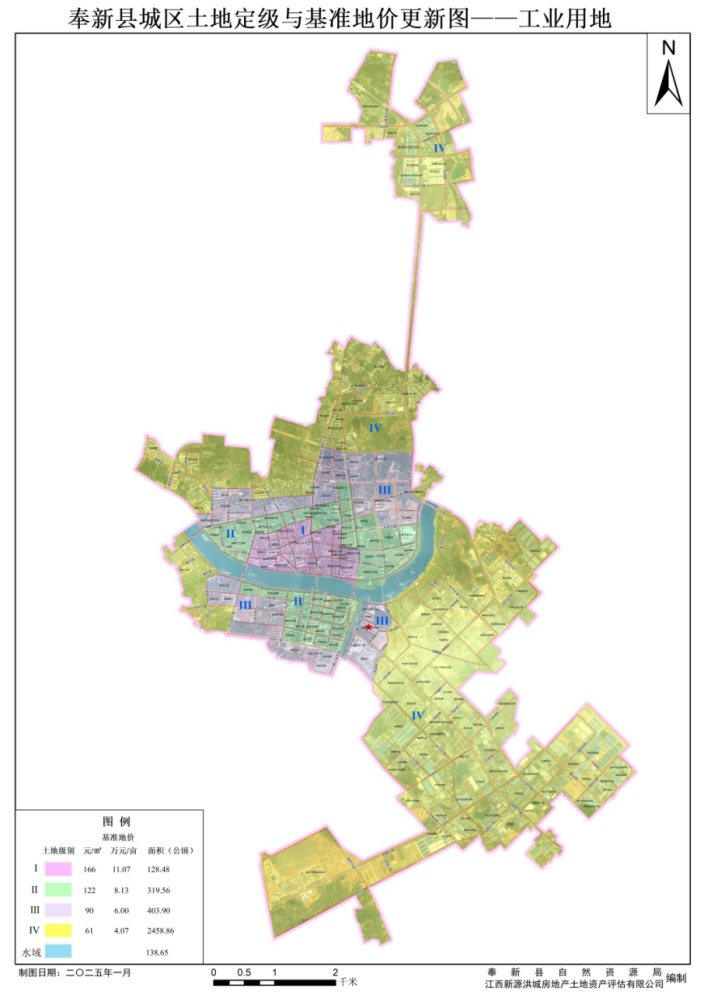 為加強地價管理,確保基準地價成果符合地產市場運行實際,引導土地市場健康發展,促進土地優化利用。根據《中華人民共和國土地管理法》《中華人民共和國城市房地產管理法》和《城鎮土地分等定級規程》《城鎮土地估價規程》《江西省自然資源廳辦公室關于做好2023年度政府公示地價制定更新工作的通知》(贛自然資辦函〔2023〕100號)文件的有關規定,我縣城區土地級別、基準地價進行了更新,其成果已通過專家評審驗收,并已報請宜春市人民政府批準執行(宜府字〔2025〕38號)。現將更新后的奉新縣城區土地定級與基準地價予以公布。