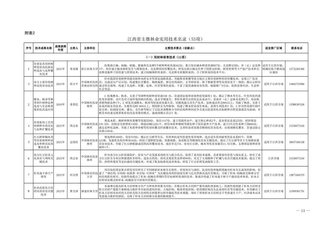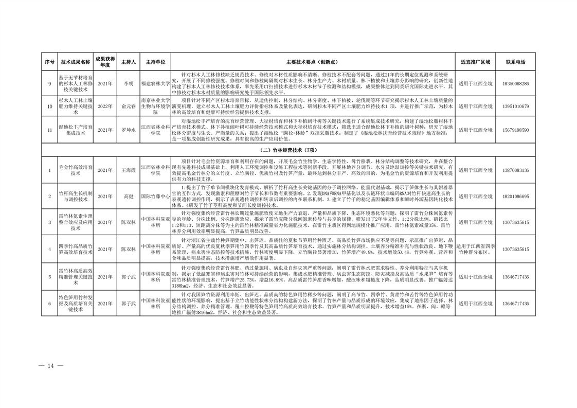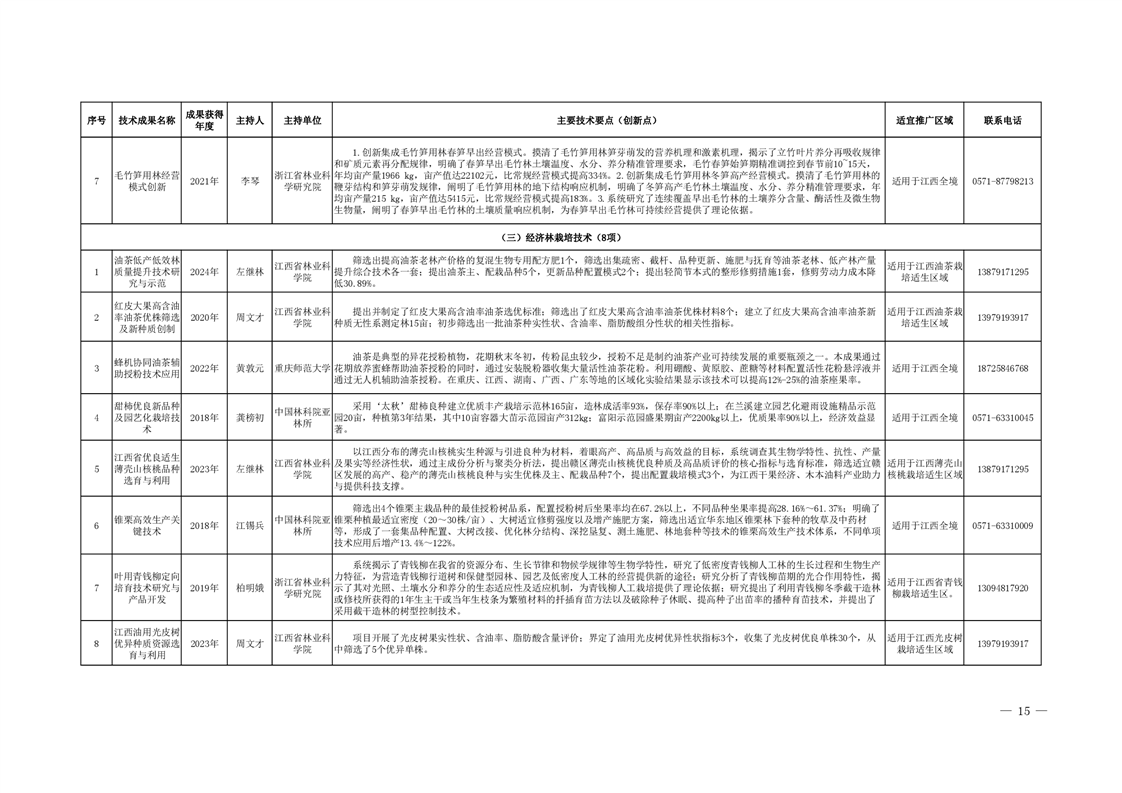 江西省主推林業科技成果名錄(第一批)
