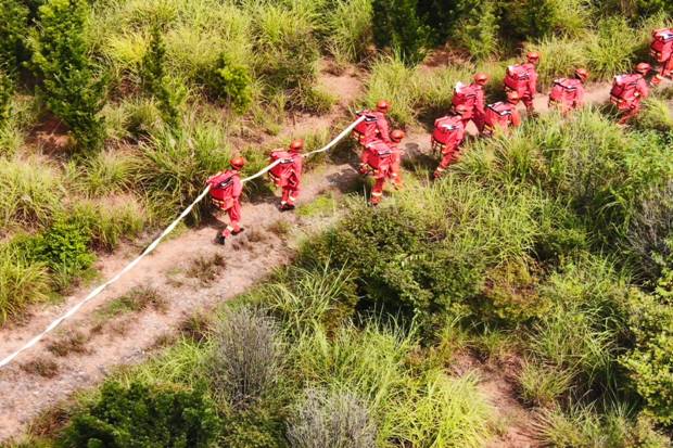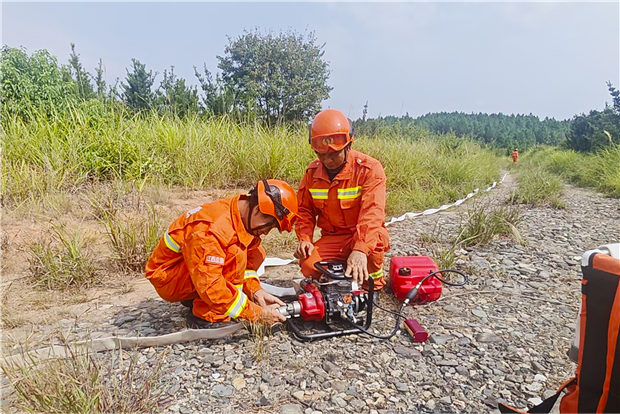 演練模擬某區域突發森林火災,火勢迅速蔓延。接到火情報告后,指揮中心立即下達作戰指令,森林消防大隊迅速集結隊伍。隊員們快速完成水泵、水帶、水槍、消防車等裝備的配置,隨后向火場機動開進。到達現場后,指揮員安排專人對火場進行空中偵察和實地勘察,并根據火勢、地形等情況進行戰斗編組。各小組迅速鋪設水帶,建立供水線路,利用高壓水槍對火勢進行壓制。經過緊張有序的撲救,大火被成功撲滅,隊員們有序撤離歸隊,整個過程緊張高效,各環節銜接緊密。