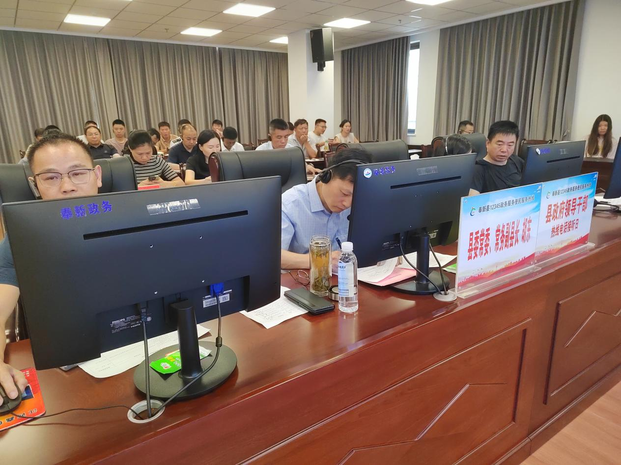 7月31日上午,奉新縣委常委、常務副縣長胡東前往奉新縣12345政務服務便民熱線縣領導接聽分廳,現場接聽市民來電,傾聽群眾訴求,回應群眾關切,以實際行動踐行“為人民服務”的宗旨。縣財政局、發改委、人社局、應急管理局、退役軍人事務局、國投集團、稅務局、社區管委會、住建局、自然資源局、市監局、教體局、馮川鎮、赤岸鎮、宋埠鎮、干洲鎮、赤田鎮、會埠鎮、澡溪鄉等19個部門和鄉鎮負責人參加,全程協同處理群眾訴求。
