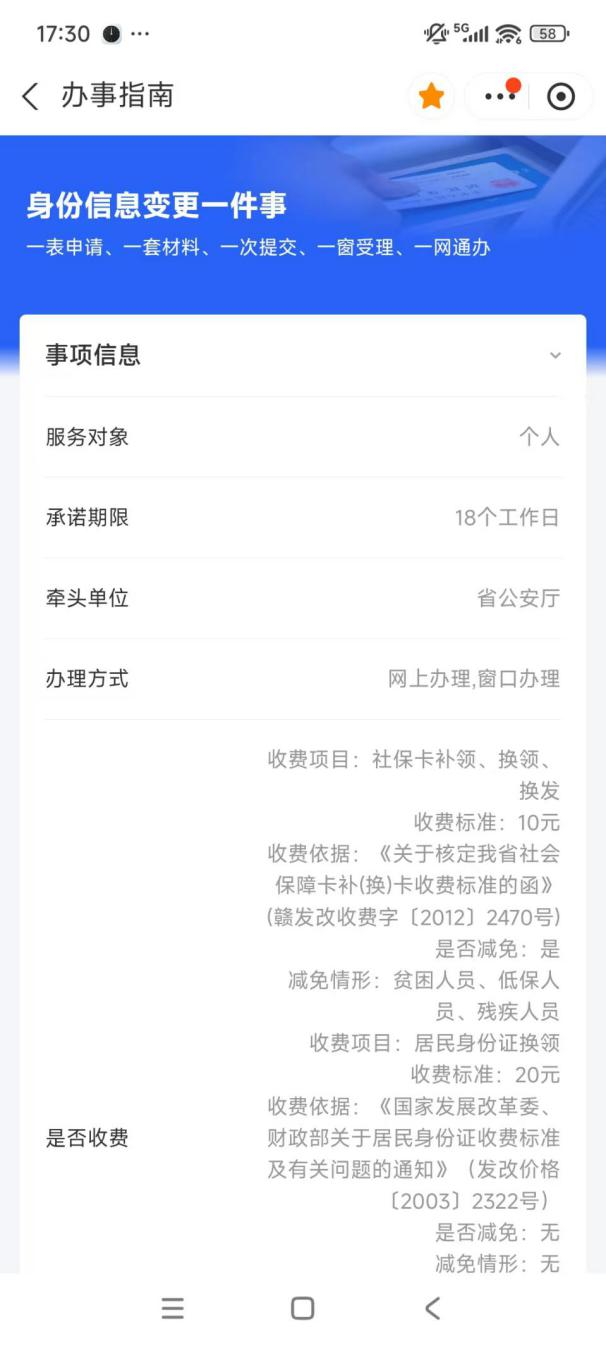 1.贛服通 → 一件事專區 → 身份信息變更一件事 點擊身份信息變更一件事,進入辦事指南頁面點擊下一步。