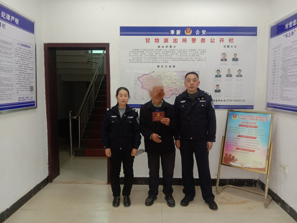 2023年3月的一天,奉新縣甘坊鎮甘坊村村委院子里門庭若市,幾位村民正仔細辨認著甘坊派出所民警手中的照片,你一言我一語地告訴民警“對,這是老黃”、“這個老黃出去了幾十年,都以為他早已不在人世了......”,這是發生在甘坊村村委的一幕調查實景。
