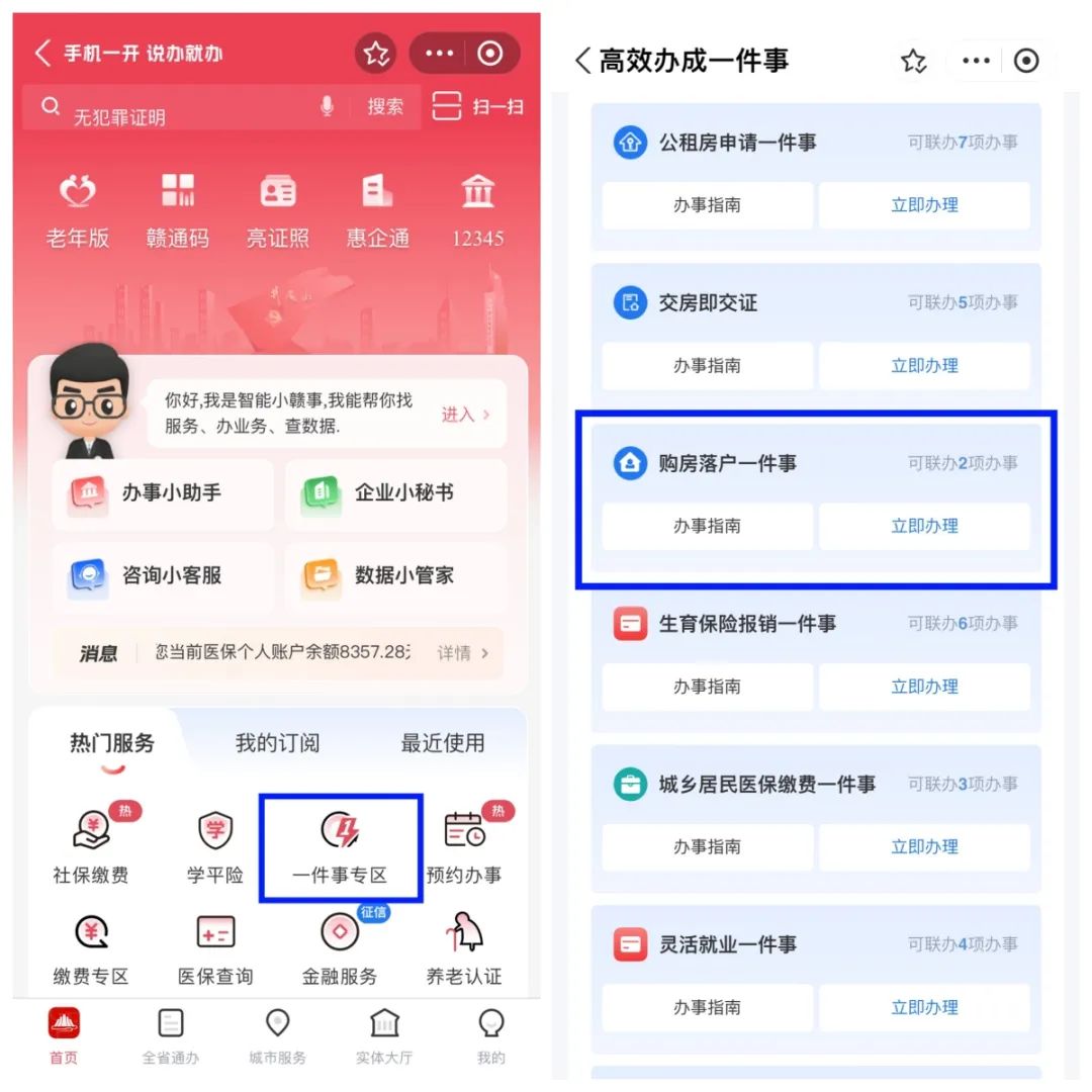 群眾可通過“贛服通”——“一件事專區”——“購房落戶一件事”申請辦理。
