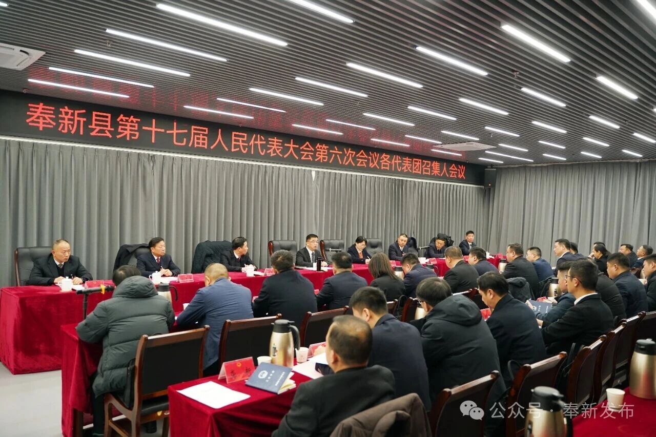 1月22日下午,奉新縣第十七屆人民代表大會第六次會議舉行各代表團召集人會議??h委書記黃為民出席并講話,縣領導涂玉姬、羅來平、劉勇勤、余雪勇、龔雨平、陳輝、何伍斌等出席會議。